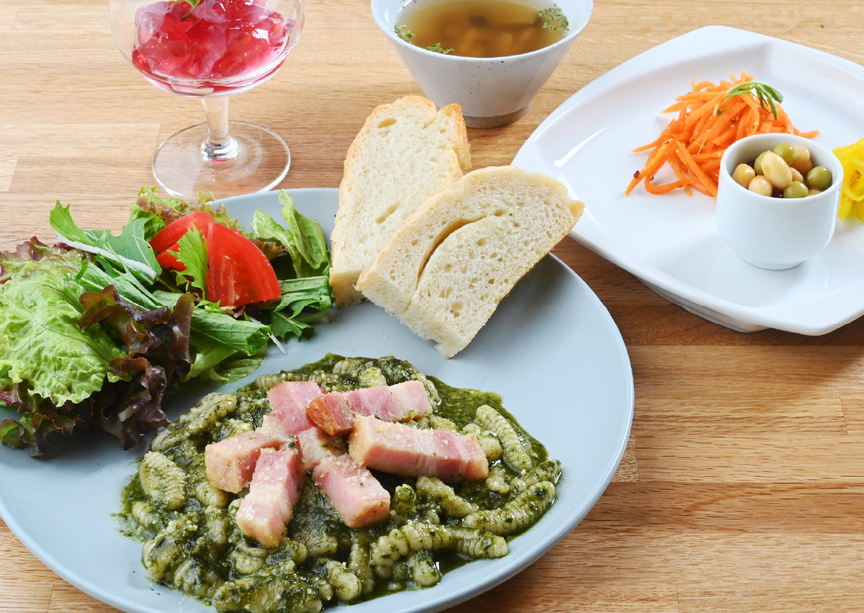 ムギノワカフェでは、自慢のパスタ&パニーニを愉しめるパスタランチ、フルーツたっぷりのパフェ、オーガニックのドリンクを用意して、皆さまのお越しをお待ちしています。